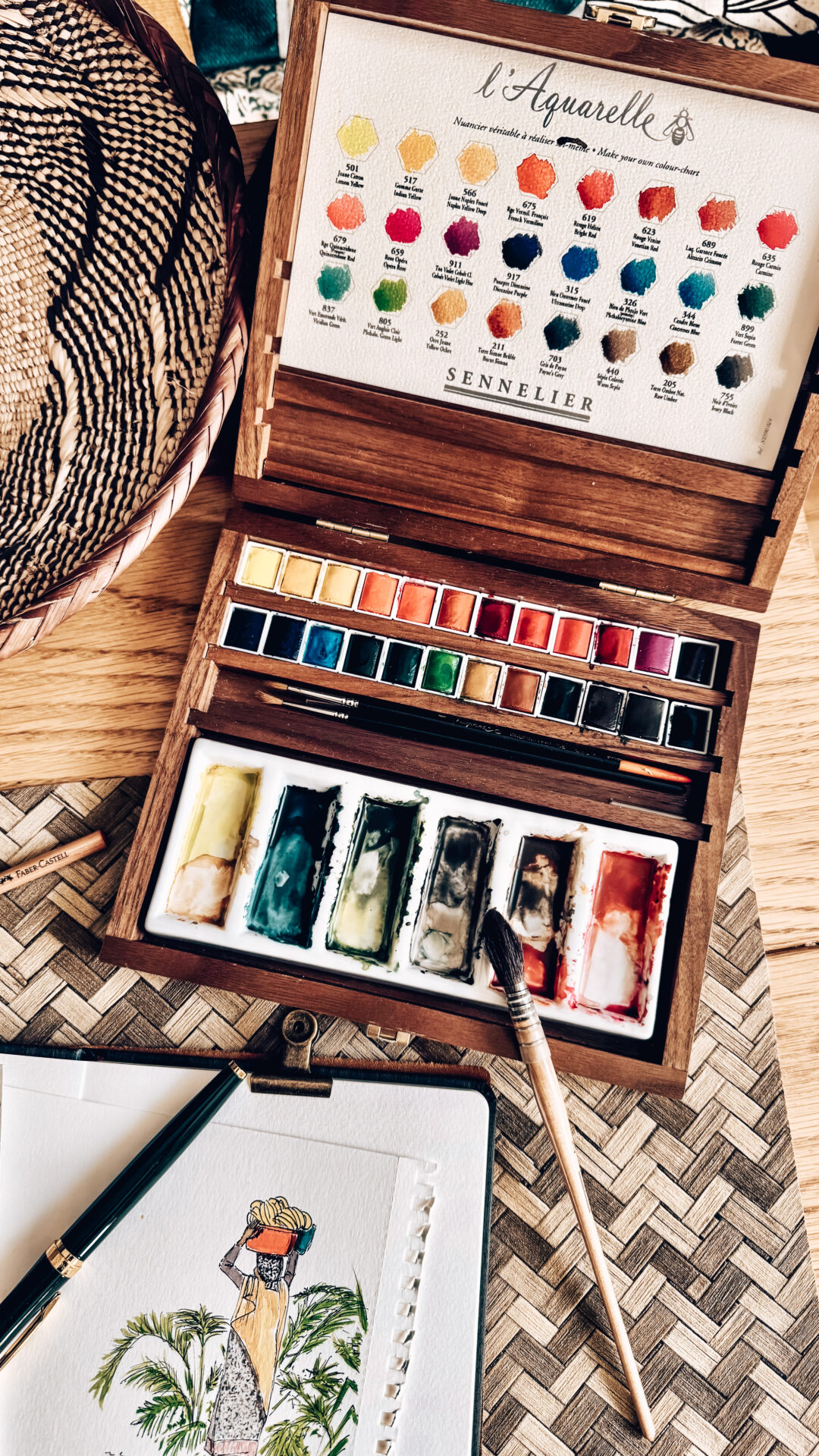 Coffret aquarelle extra-fine en noyer – 24 demi-godets