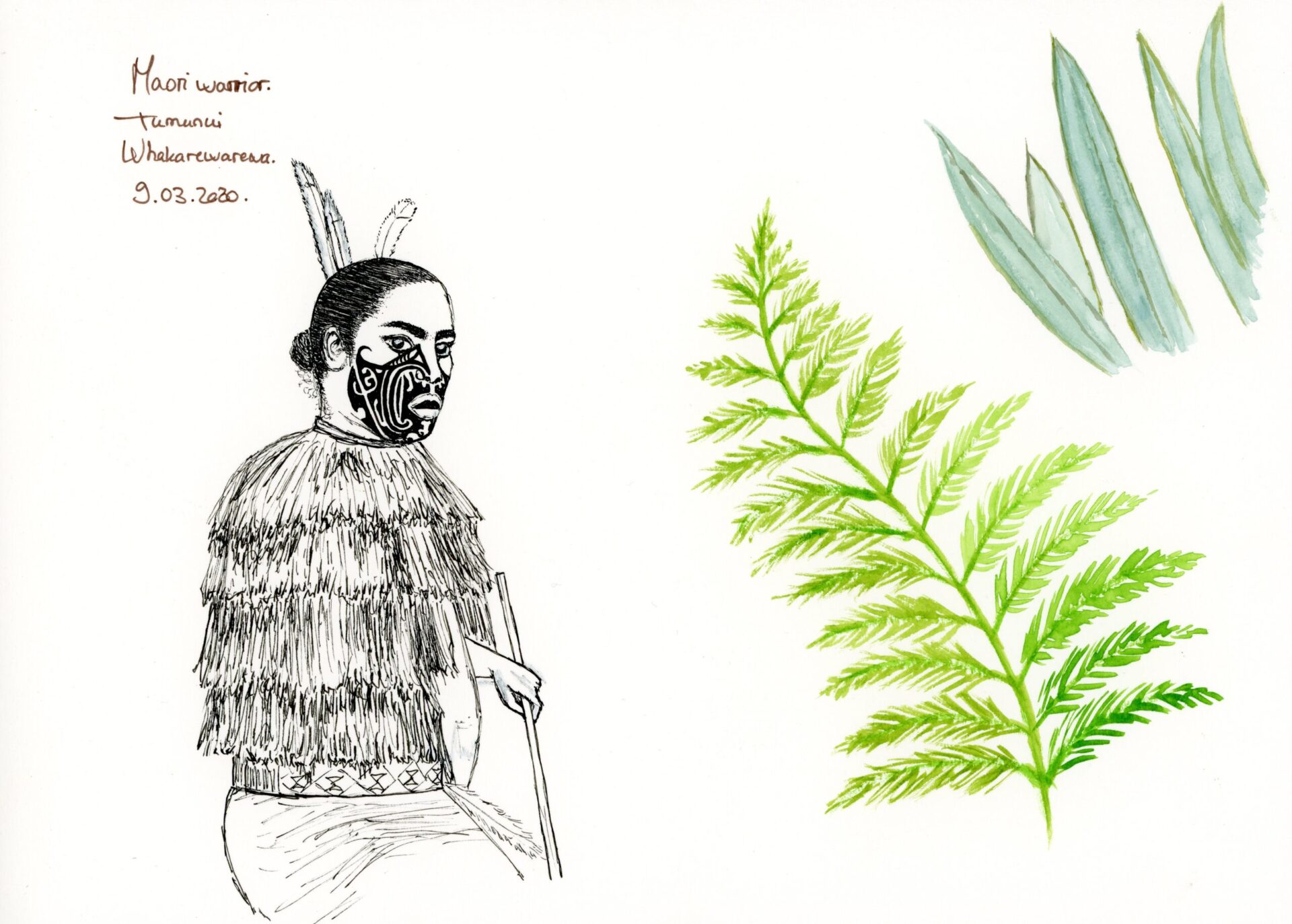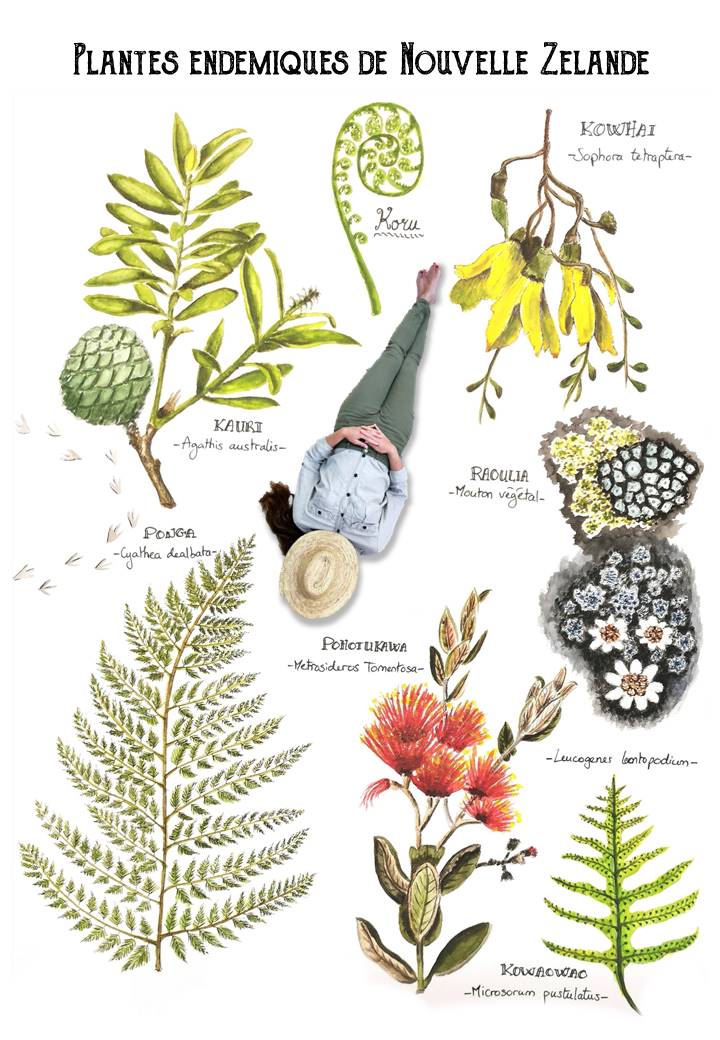 Voici quelques croquis issus de mon carnet de voyage en Nouvelle-Zélande. Entre la faune atypique, la flore endémique et la culture spécifique et ancestrale, il y avait de quoi dessiner. J’ajouterai d’autres dessins par la suite. Bonne visite !