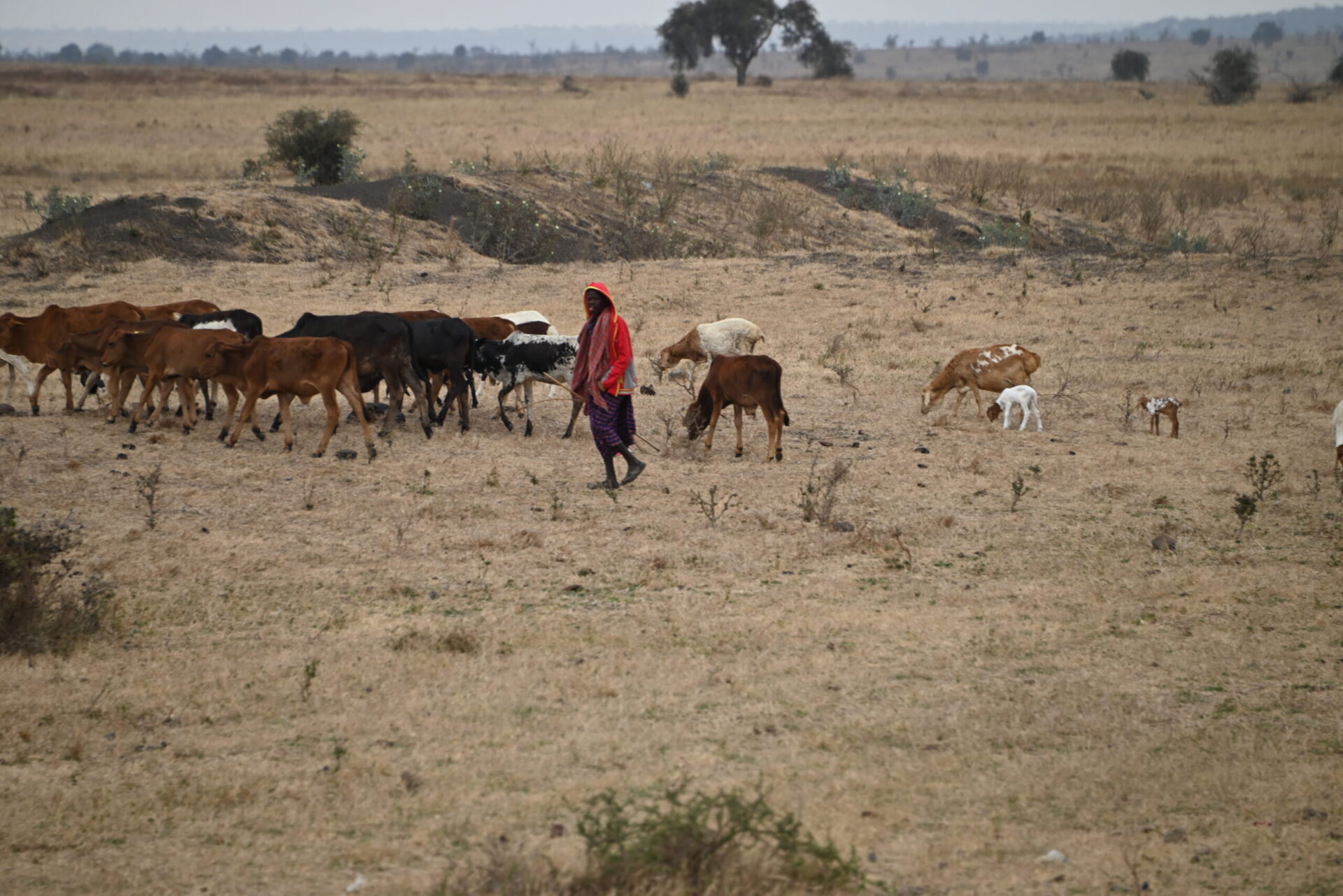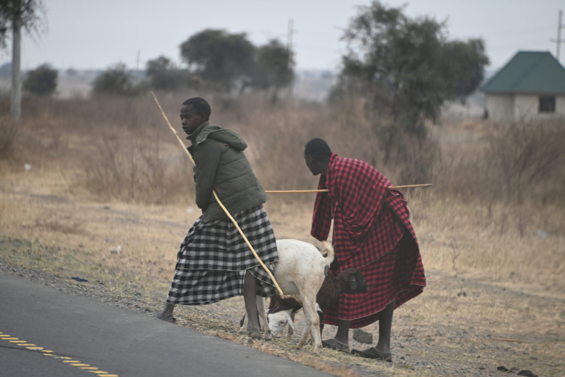 Fréquemment le long des routes, nous frôlons des nomades aux troupeaux de vaches ou de chèvres, équipés de bâtons et vêtus de tissus à carreaux, les « maasaï ».