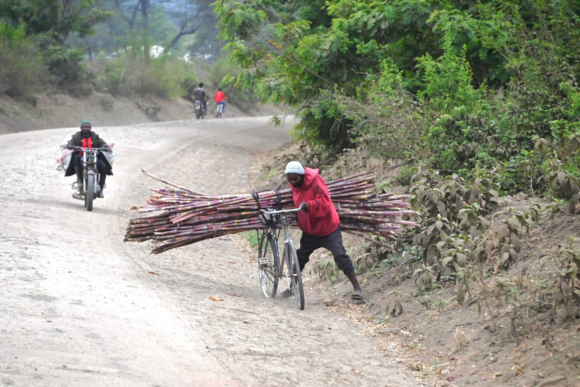 A nouveau réveillés à l’aube, nous prenons la route cabossée et poussiéreuse en direction du lac de Manyara. Toujours aussi verdoyante, la voie est déjà passante avec de nombreux locaux aux couleurs chatoyantes. On discute, on transporte du bambou, on commerce, on cultive…