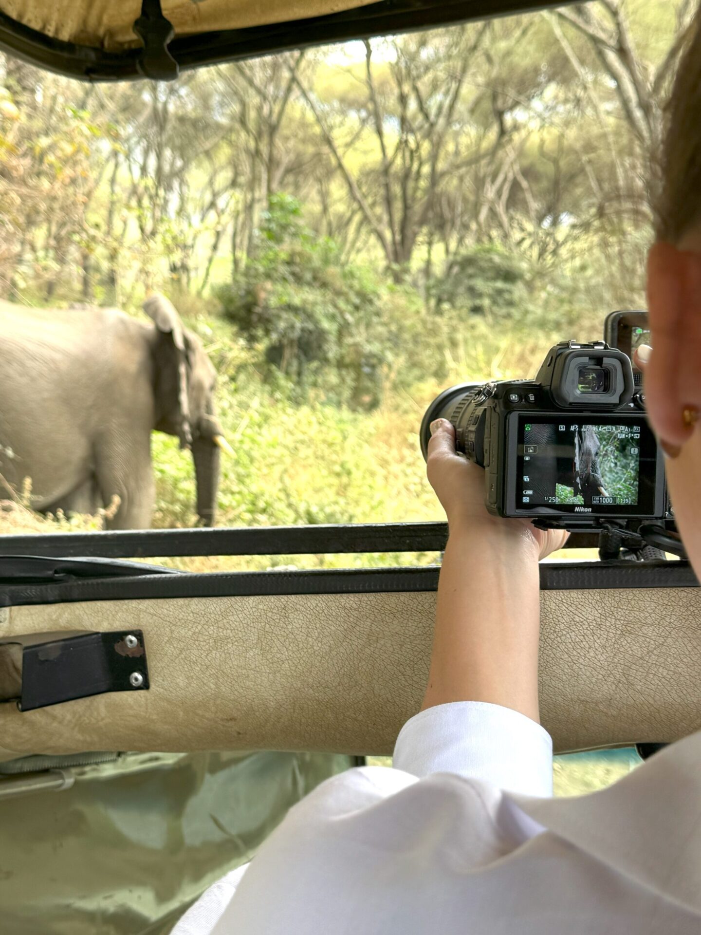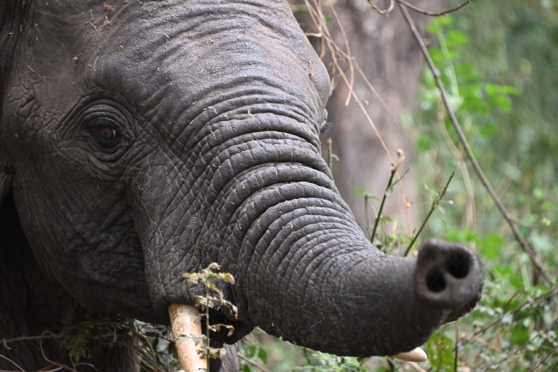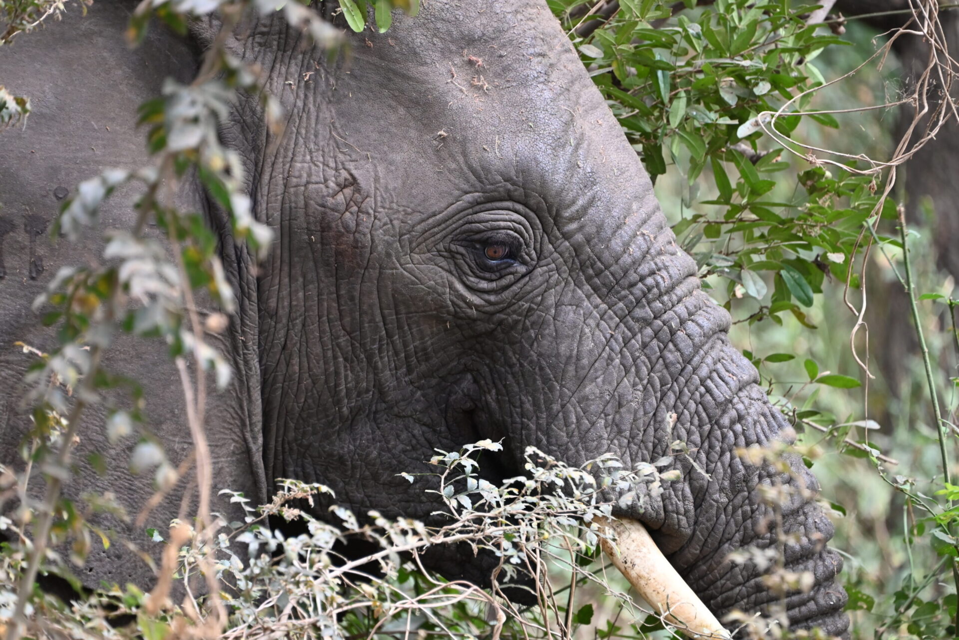 Effectivement, ça ne rate pas, on entend un léger bruissement dans les feuilles hautes… Des troupeaux de mamans éléphants agiles et discrètes apprennent à leurs bébés l’art de se nourrir.